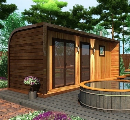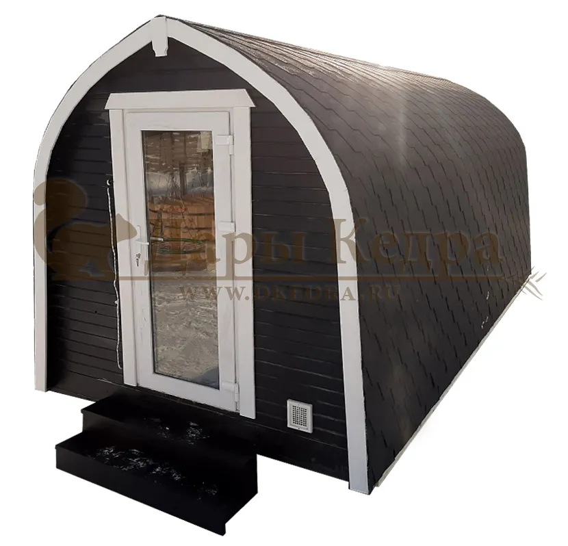 Симбиоз круглой и квадратной бани-бочки. Разработано с учётом эргономики, в ней так же просторно, как и в квадро-бочке, но при этом полукруглая крыша не дает задерживаться снегу и влаге на кровле. А еще такая баня безусловно красивая, мобильная и доступная каждому!