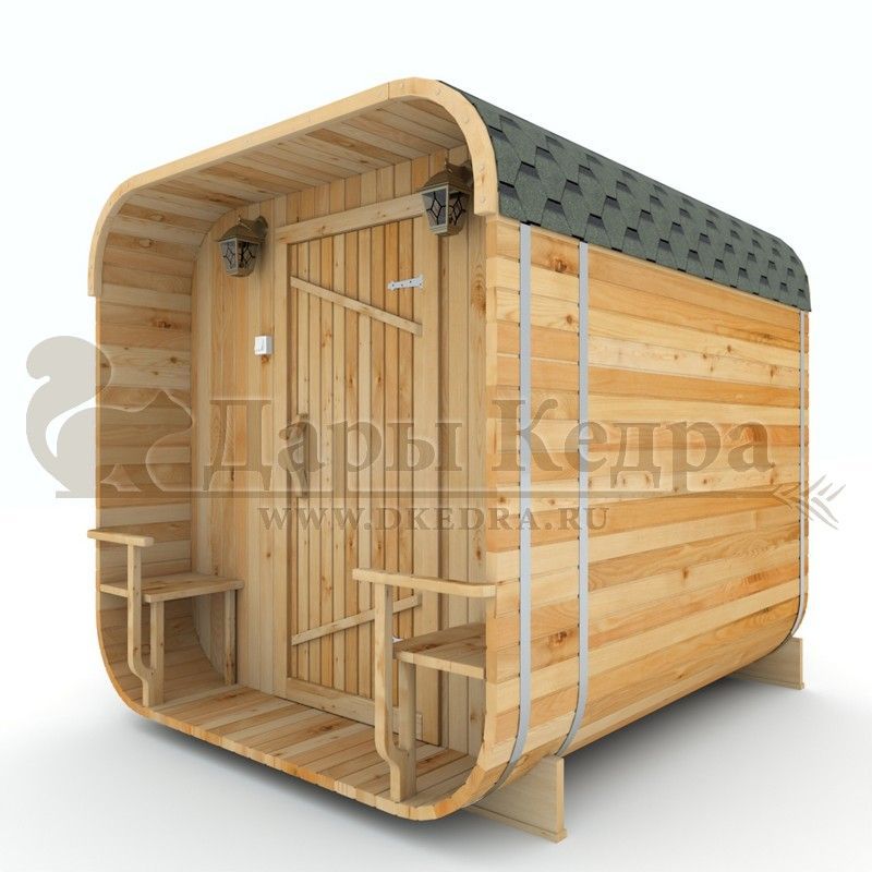 Баня-бочка квадро из кедра с козырьком (все размеры)