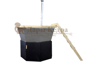 Банный чан с ветрозащитой изготовлен из пищевой стали. Представляет собой большую ёмкость в виде чаши, при нагревании которой можно париться на свежем воздухе. Банный чан установлен на металлическую закрытую подставку, которая служит защитой от ветра и печью одновременно. В комплект такой модели входит дымоход 2 метра. Чан оборудован кедровым бортом, скамейками, подспинниками, трапом для ног и приставной лестницей.