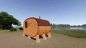 Мобильная баня-бочка с каждым днем набирает все большую популярность благодаря её возможной транспортировки куда угодно: на отдых в лесу, на рыбалку или на побережье реки