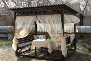Беседки из металла сочетаются абсолютно с любым ландшафтным дизайном, на зелёном газоне смотрятся конструкции ярко, изящно и стильно. Сиденья, как правило, выполнены из дерева. Покупая садовую мебель из стали от производителя, Вы получаете сразу готовый товар на длительный срок эксплуатации.