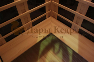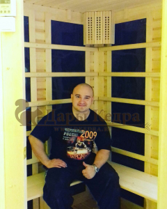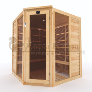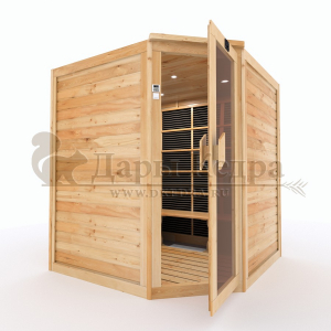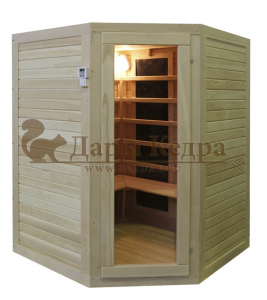 Это специально оборудованная кедровая кабина для прогрева тела человека сухим теплом. Воздух в таких парных не нагревается. Инфракрасные лучи воздействуют на тело, равномерно прогревая мышцы, суставы и органы. Карбоновые излучатели, встроенные в стены кабины, обладают мягким прогревом, что полностью исключает возможность ожога. Работает кабина за счет электричества. Установка сауны в угол, позволяет рационально использовать пространство помещения. Подходит как для домашнего использования, так и для коммерции.