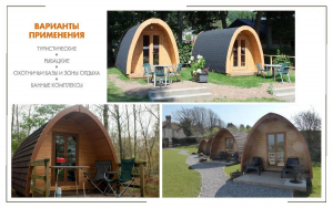 Такой кемпинг дом удобное и практичное решение для дачного использования или обустройства загородных баз отдыха. Изготовлен из хвойных пород древесины. Кровля из мягкой черепицы и цельный навес по всему фасаду изделия обеспечивают защиту от осадков. Домик включает в себя две спальные комнаты с четырьмя кроватями. По вашему желанию одно из помещений можно оборудовать под душевую зону с санузлом. Для удобства пользования в домике находится навесной столик, полка и вешалка. Входная дверь изготовлена из двойного стеклопакета.