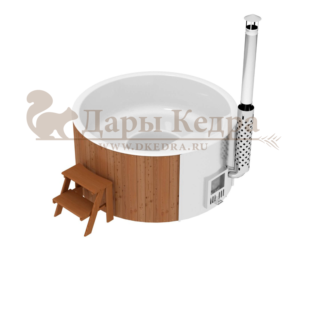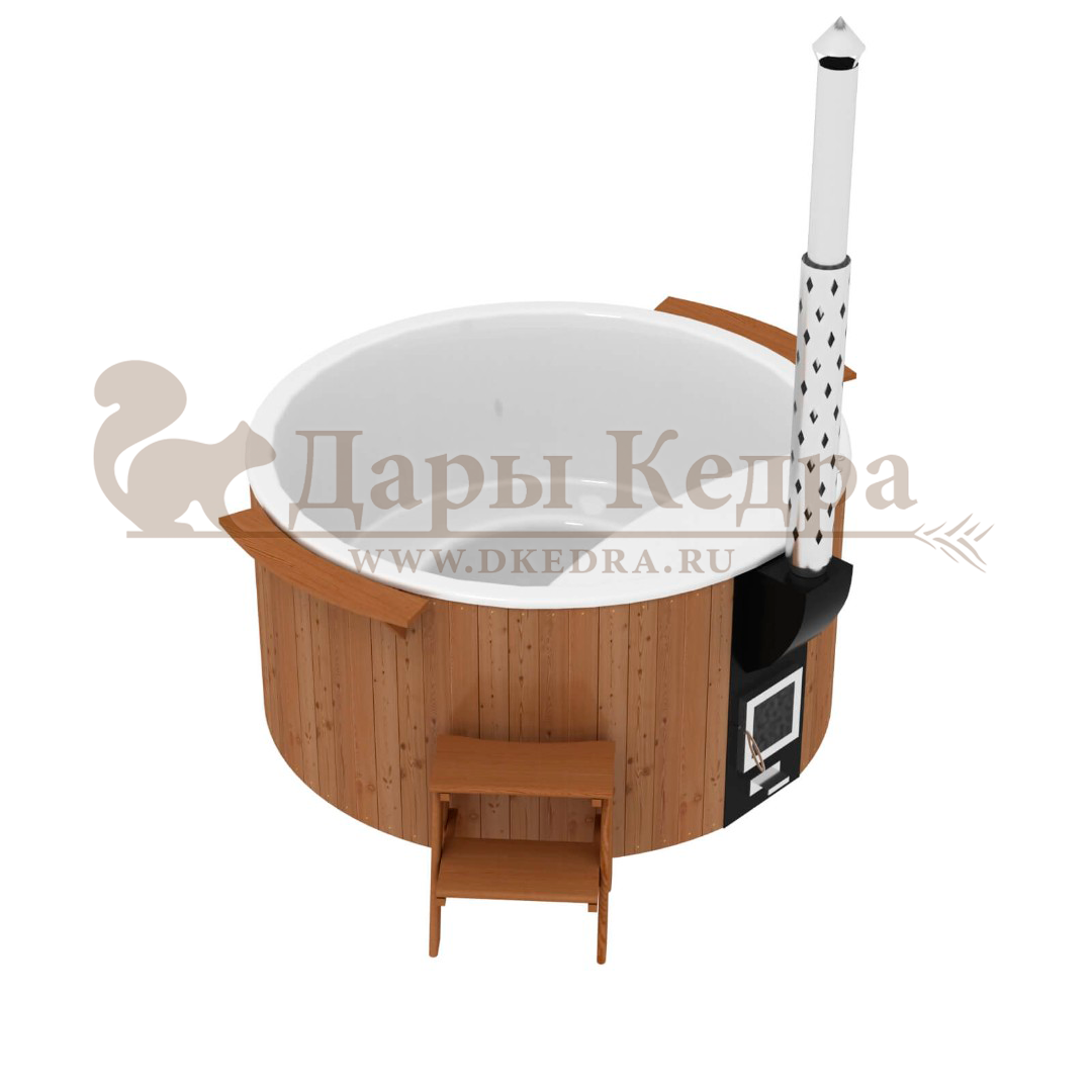• Фурако круглая из кедра с термопластиковой вставкой со встроенной печью Это уличная подогреваемая купель с круглой внутренней чашей из термопластика. Для удобства пользования купель оборудована лавочками, приставной и внутренней лестницей. Нагрев воды происходит за счет встроенной печи, которая находится внутри купели за перегородкой. В комплектацию этой модели входит савок с длинной ручкой, который позволяет извлекать угли после эксплуатации изделия. Термопластик устойчив к воздействию температур, облегчает уход за купелью и увеличивает срок ее службы. Парение на свежем воздухе – это отличный способ укрепить здоровье и поддержать организм в тонусе.