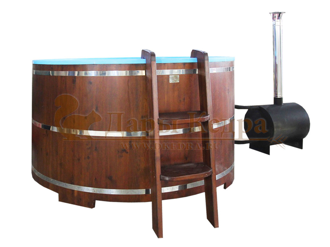 • Фурако круглая из кедра с литой термопластиковой вставкой с внешней печью Это уличная подогреваемая купель с круглой внутренней чашей из термопластика, которая имеет цельную форму вместе с сиденьями и дном. Для удобства пользования купель фурако оборудована приставной лестницей. Подогрев воды осуществляется за счет внешней печи с дымоходом. Термопластик устойчив к воздействию температур, облегчает уход за фурако и увеличивает срок ее службы. Парение на свежем воздухе – это отличный способ укрепить здоровье и поддержать организм в тонусе.