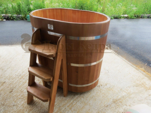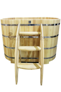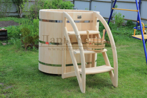Приставная лестница с тремя ступенями и закруглёнными перилами обеспечит максимальный комфорт при входе и выходе из купели.