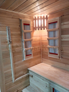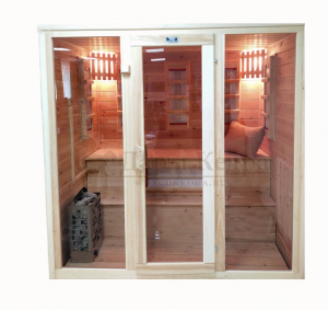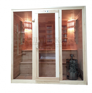 Данную модель можно использовать как инфракрасную кабину, так и финскую сауну. Керамические нагреватели отвечают за сухое тепло. Они излучают инфракрасные лучи, которые равномерно прогревают тело человека. Электрическая печь нагревает кабину изнутри и позволяет сбрызгивать камни водой, слегка увлажняя воздух.